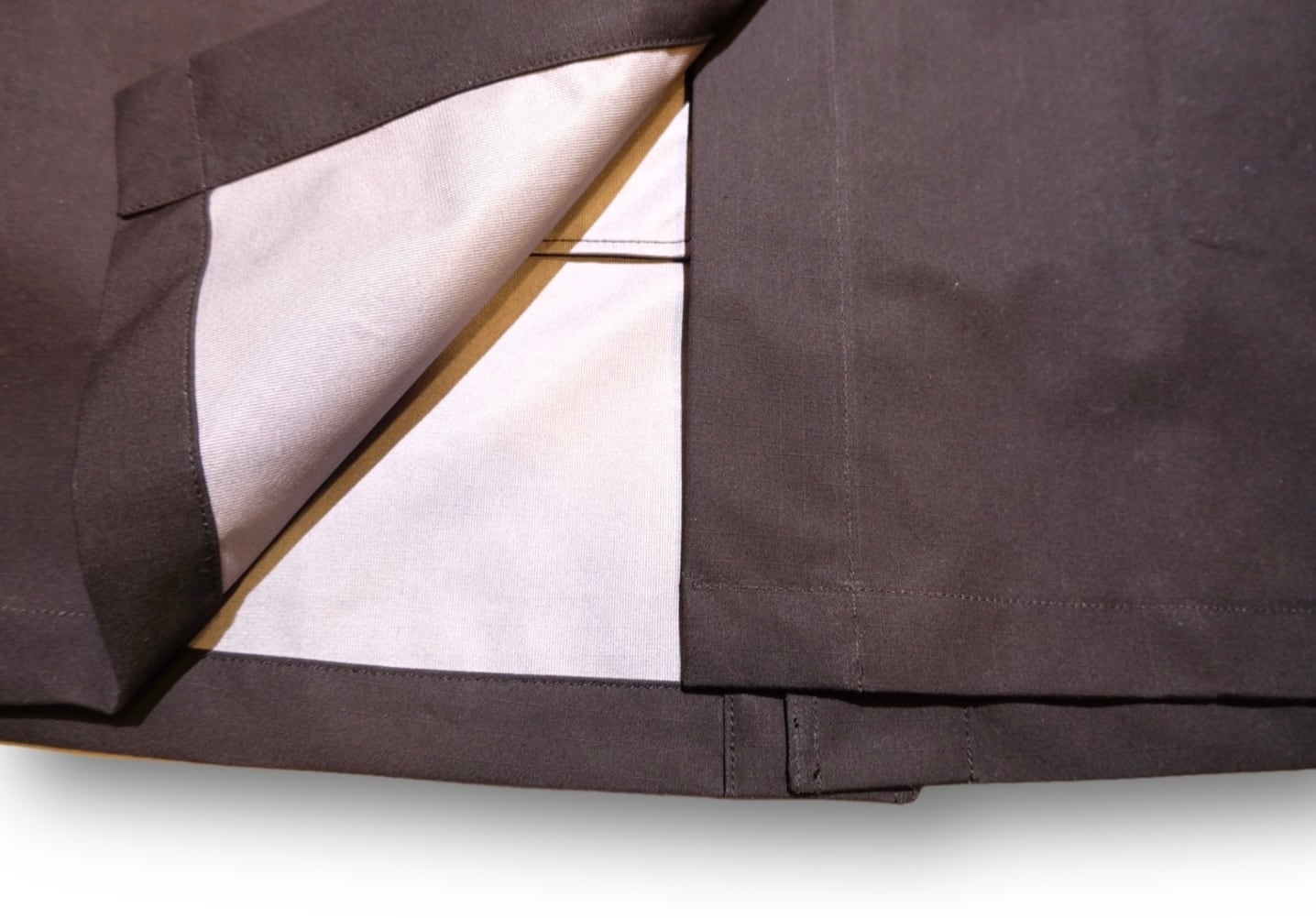 そのコンセプトに基づき 今回素材には3レイヤーと呼ばれる 3層構造の高機能ファブリックを使用。 3レイヤーとは、ゴアテックスに代表される 高機能素材で 表地と中間層(フィルムなど特殊素材)、 そして裏地の3層を圧着させて できている機能素材です。 中間層の特殊フィルムにより、 生地に防水・防風性能を持たせつつ、 透湿性を確保することで、 洋服内がむれにくくなっており、