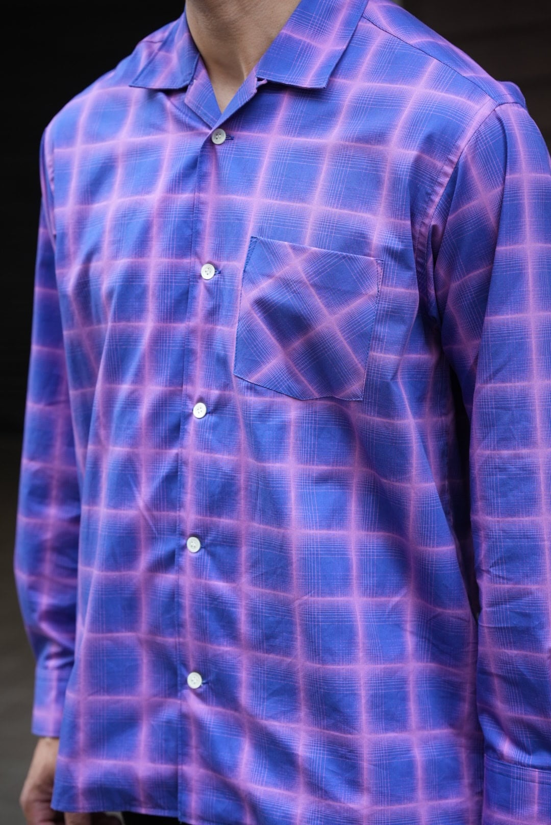 ゆったりとした開襟シャツ。生地には