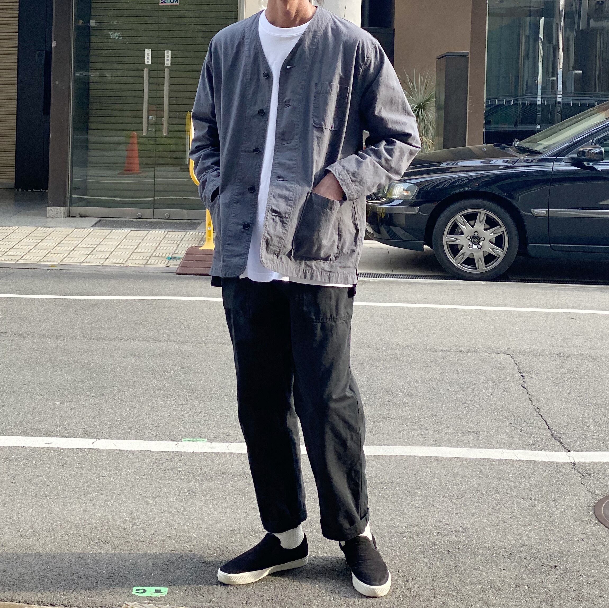 形はノーカラーの薄手のジャケット。