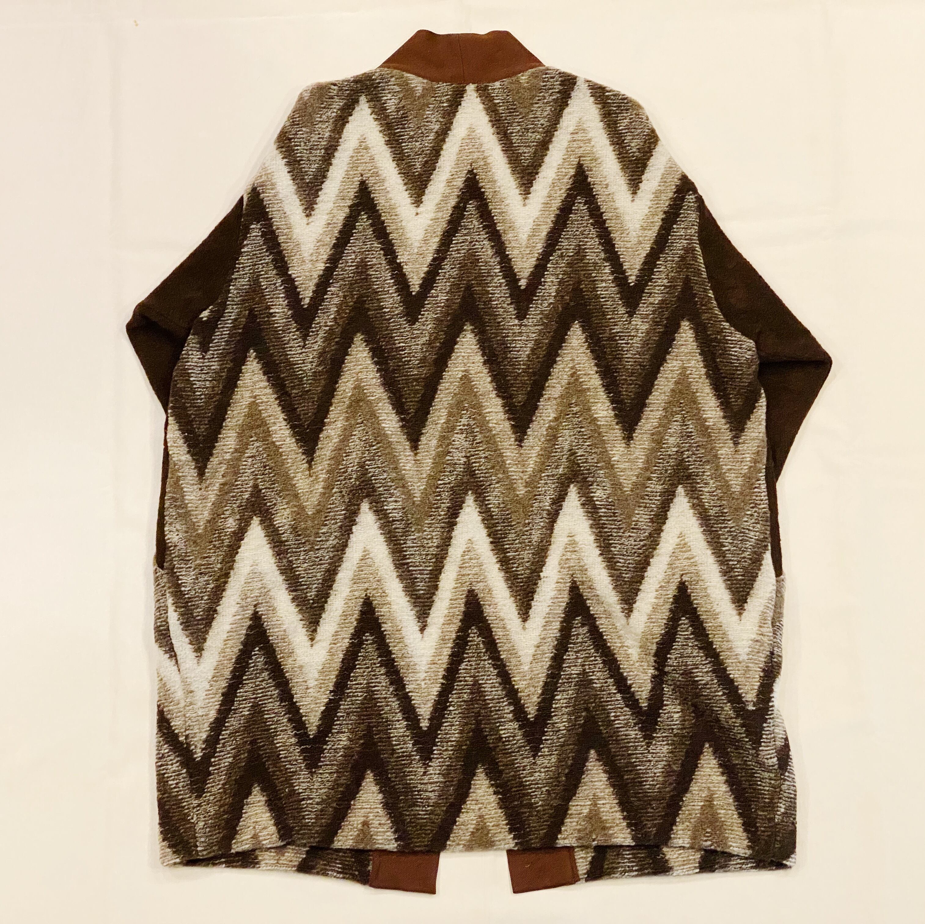 90年代を彷彿させる柄幾何学模様が特徴のロングコクーンカーディガンです。