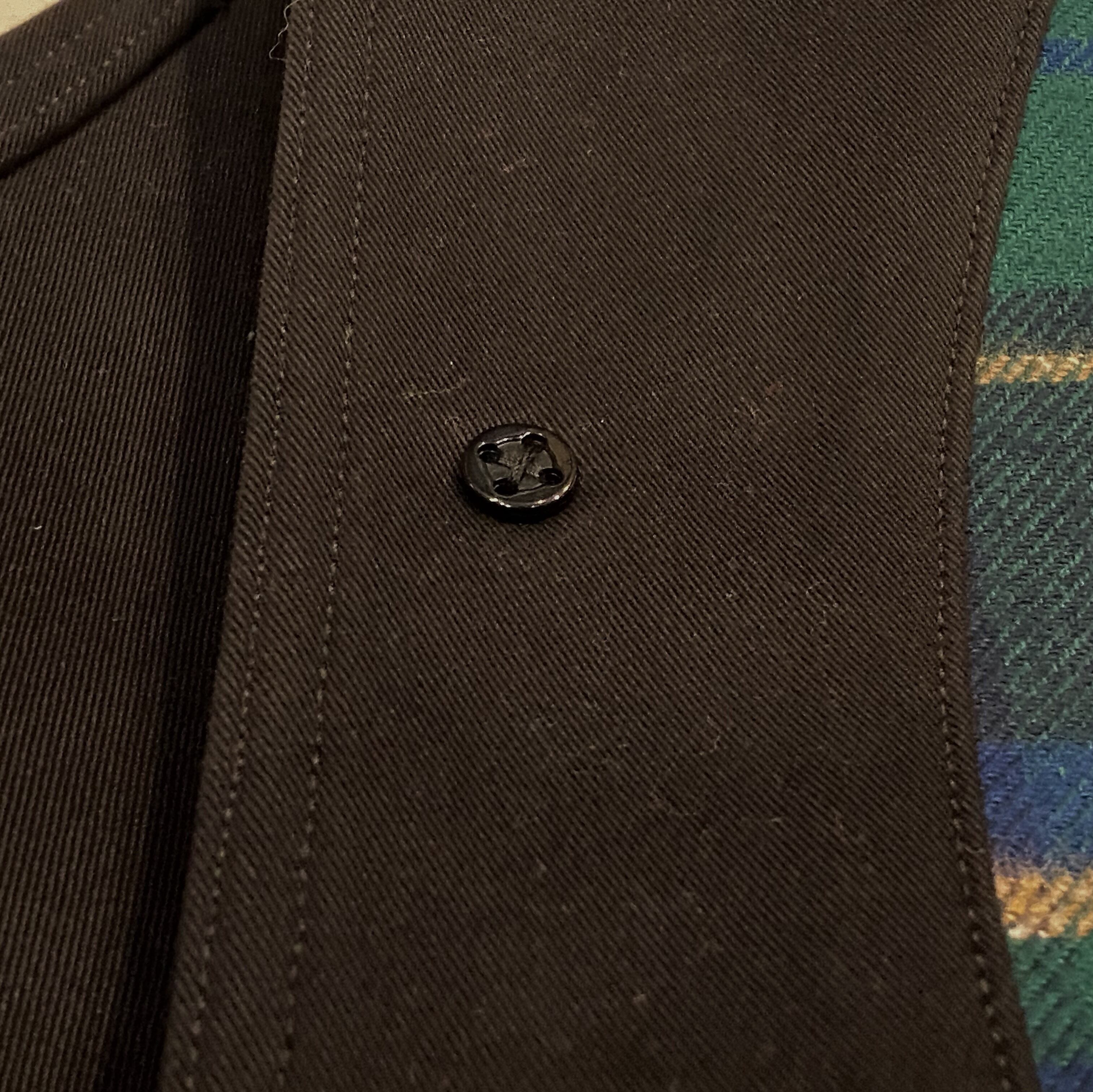 ボタンも高級なコロゾボタンに、裏ボタンまで付けてあります。