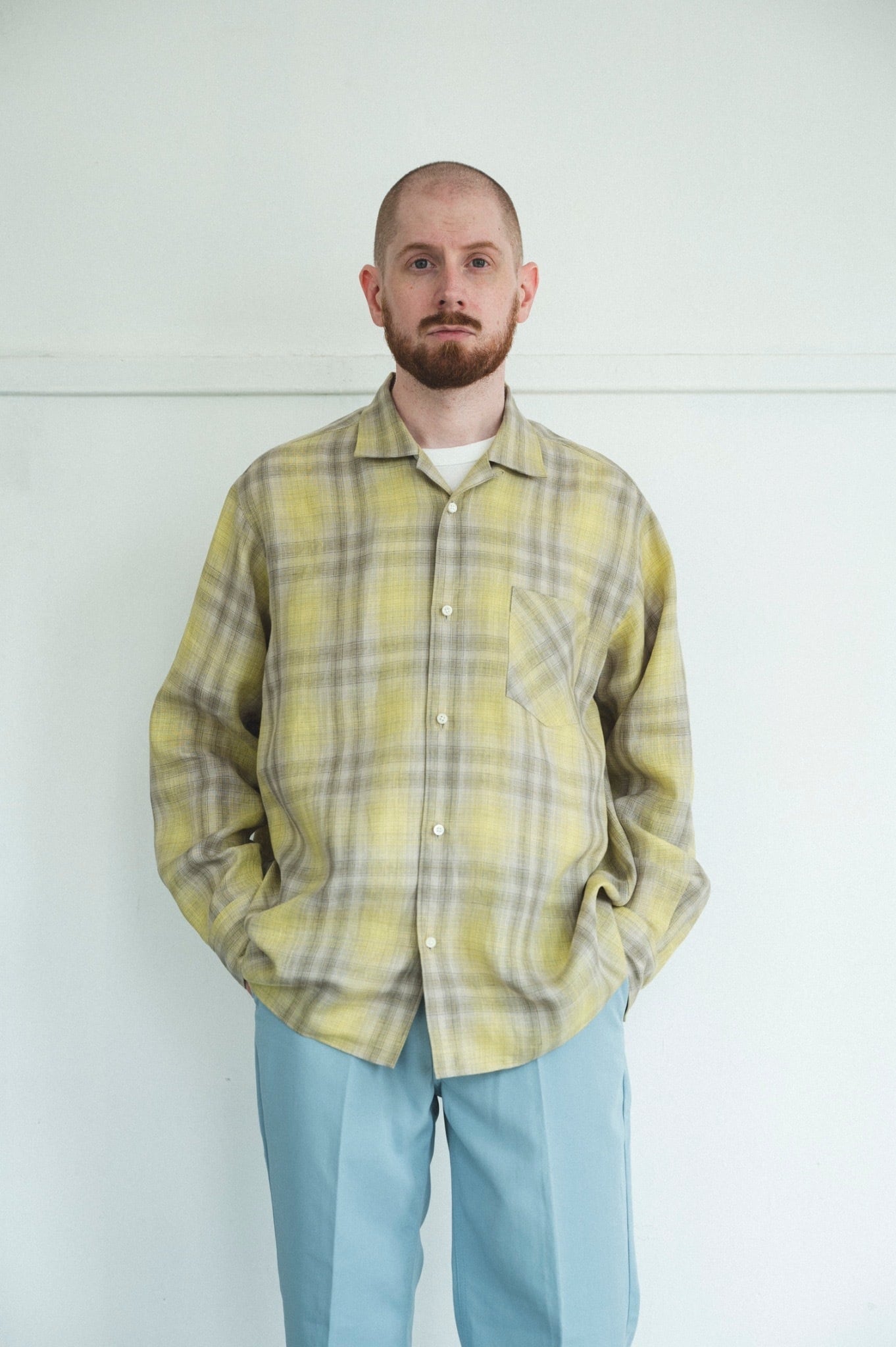 適度にゆったりとした開襟シャツ。